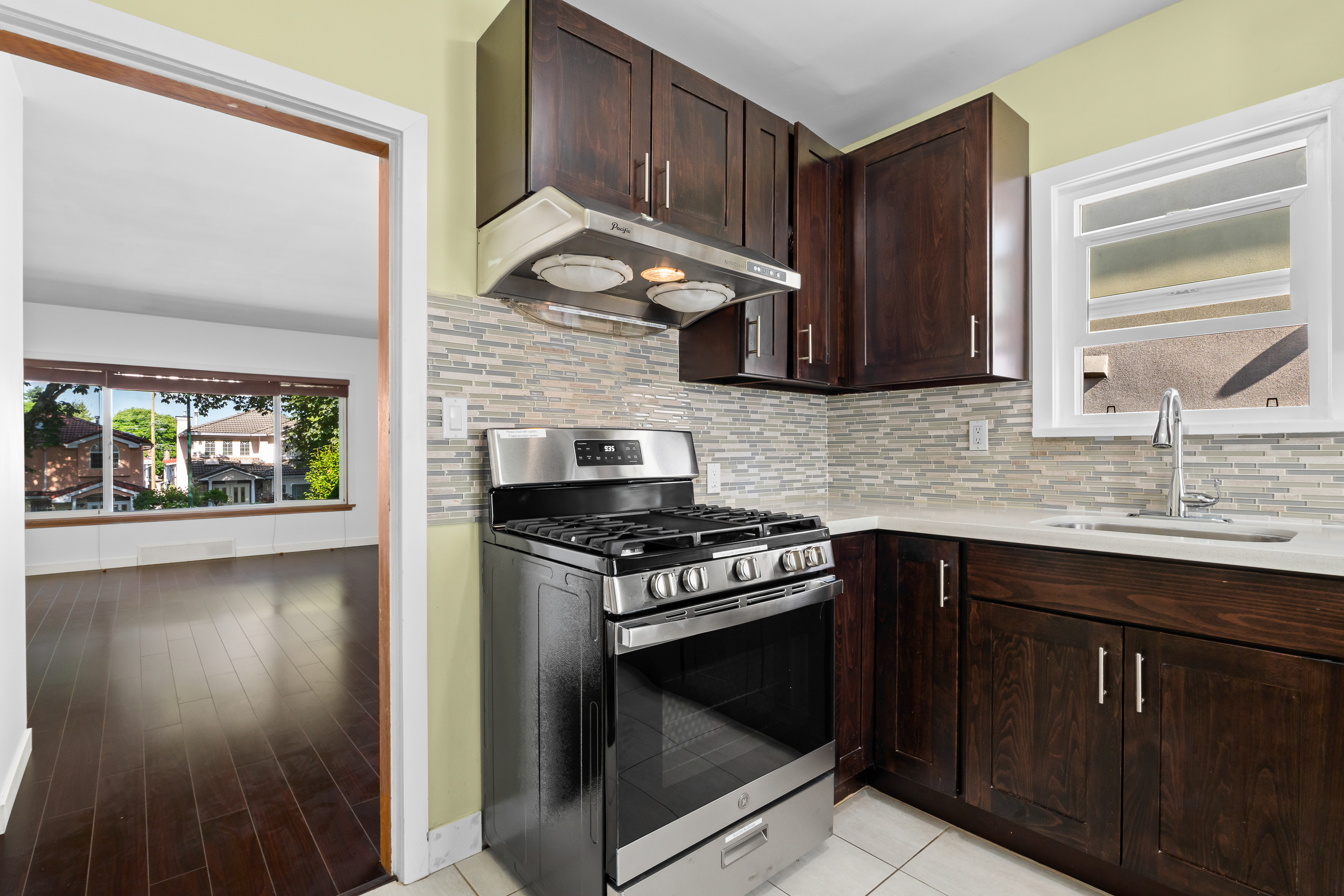 Welcome to this tastefully updated 3-bedroom, 1-bathroom main-level home located in the vibrant and family-friendly Kensington-Cedar Cottage neighbourhood of East Vancouver. Offering approximately 1,200 sqft of thoughtfully designed living space over two levels, this home seamlessly blends character with modern upgrades. Step inside to a spacious, open-concept living and dining area featuring a cozy electric fireplace and large windows that flood the space with natural light. The renovated kitchen is a standout, complete with sleek stainless steel appliances, a gas stove, ample cabinetry, countertop space—perfect for preparing meals and entertaining with ease.